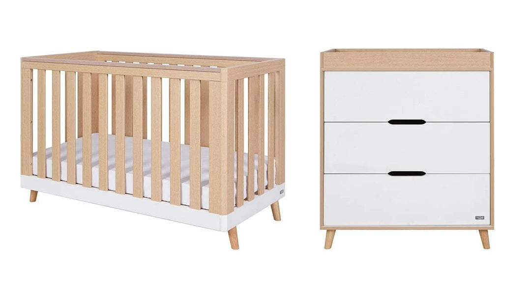 See our range of 2-piece nursery furniture sets, thoughtfully designed to create a cohesive and functional space for your baby. Each set typically includes a cot bed and a matching dresser, ensuring essential storage and a comfortable sleeping area. Featuring trusted brands like Tutti Bambini and Obaby, these sets blend style and practicality to suit any nursery décor. Browse our collection to find the perfect combination for your little one's room.