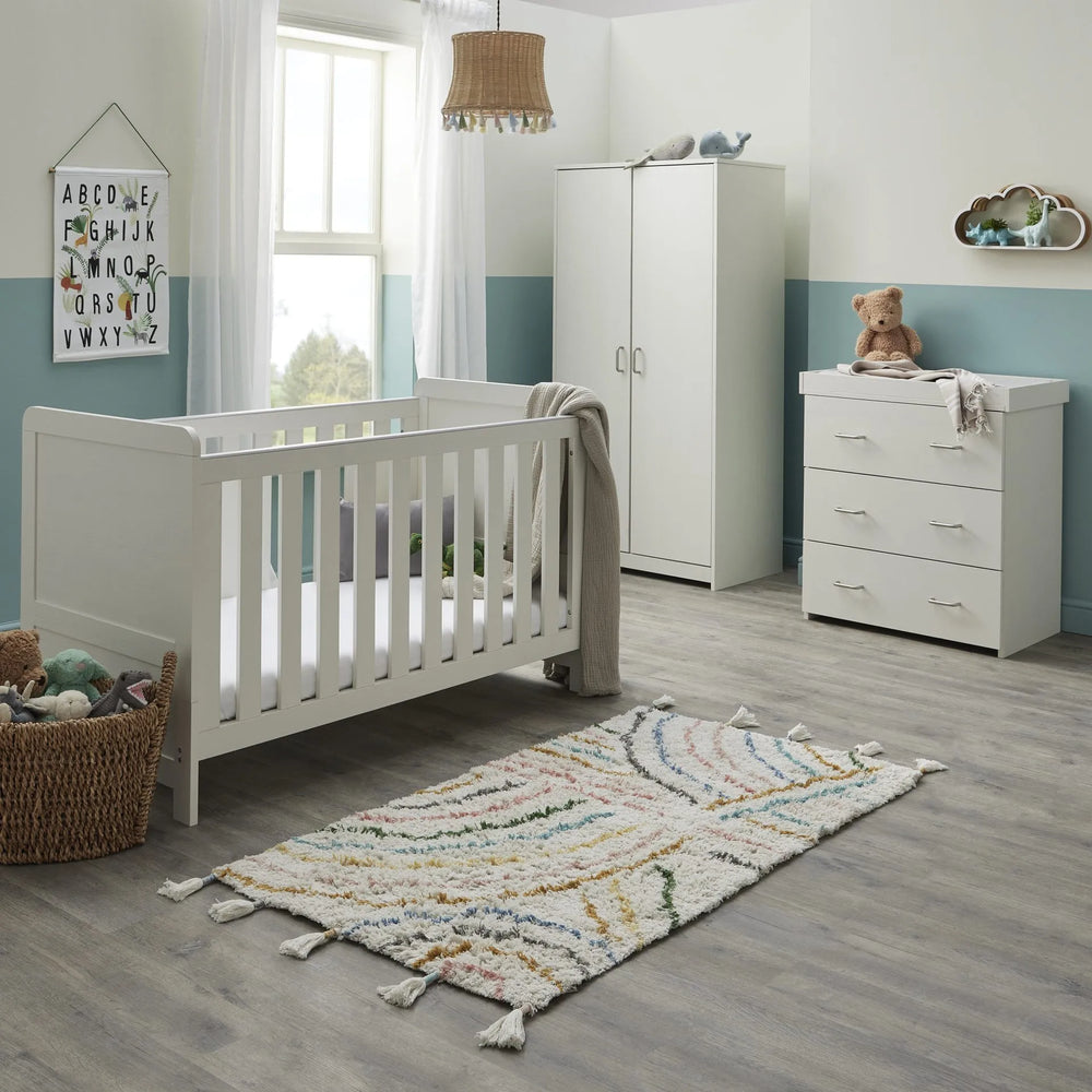 Look through our range of 3-piece nursery furniture sets, thoughtfully designed to create a cohesive and functional space for your baby. Each set typically includes a cot bed, a dresser with a changing unit, and a wardrobe, providing essential storage and a comfortable sleeping area. Featuring trusted brands like Tutti Bambini and Obaby, these sets blend style and practicality to suit any nursery décor. Browse our collection to find the perfect combination for your little one's room.
