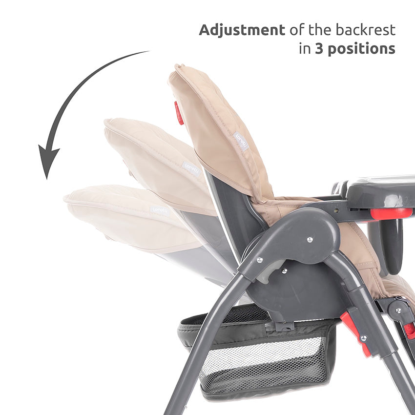 - Comfort meets functionality: equipped with a soft cushion, the travel highchair offers cosy sitting moments. The bottle holder and storage basket increase functionality