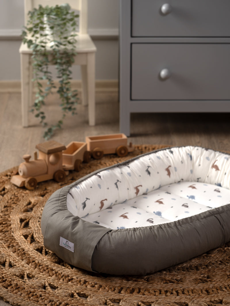 Create a safe, snug, and stylish space for your little one with the Dinosaurus Baby Nest in Green. Designed for comfort and convenience, this baby nest is ideal for supervised lounging, tummy time, playtime, or as a cosy spot for daytime naps.