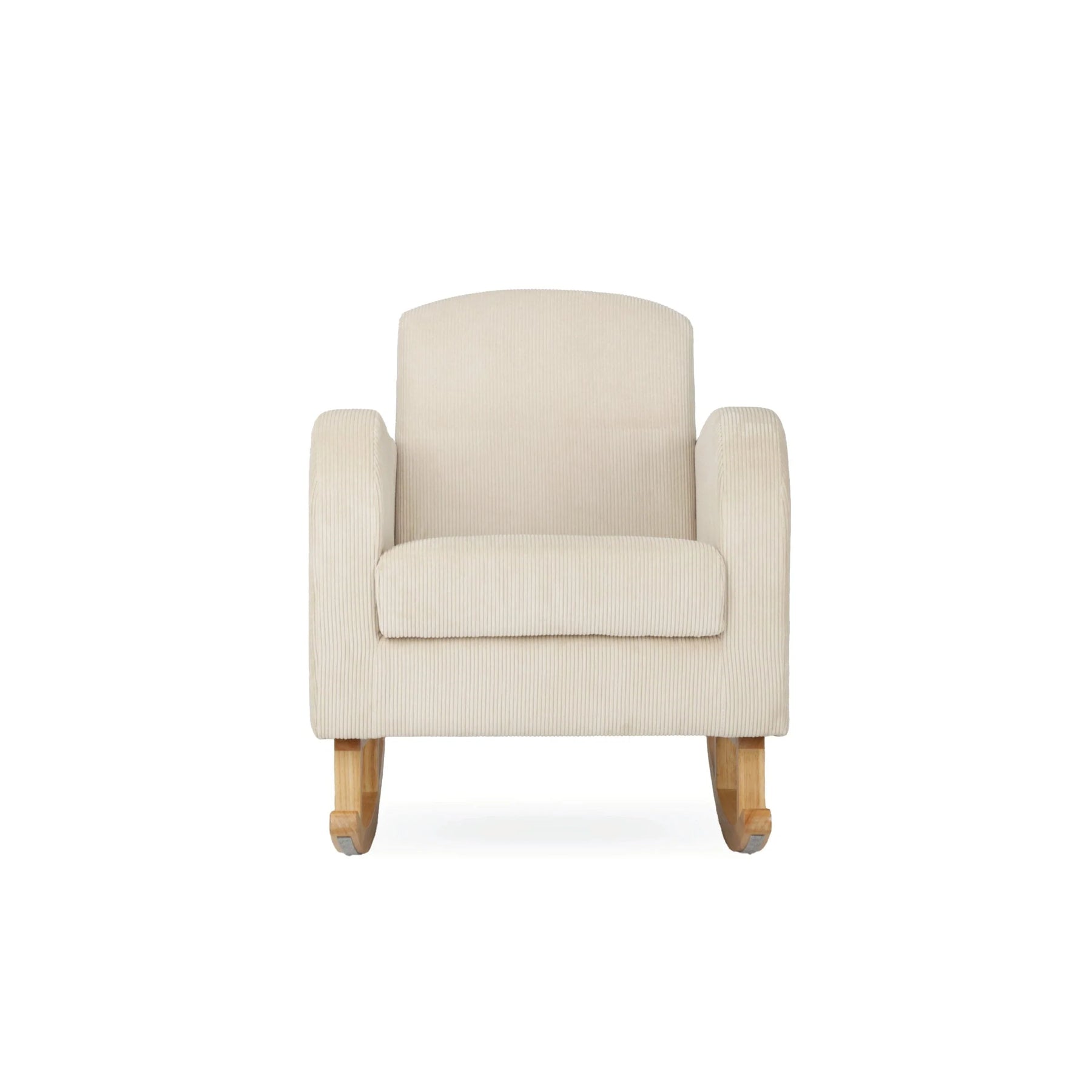 Upholstered in soft sand-tone corduroy, the nursing chair offers deep cushioning, supportive armrests and a shaped back to help reduce strain during longer feeds, while the smooth wooden rocking base provides gentle, calming movement day or night. Paired with the coordinating footstool, the set supports comfortable posture during feeds and is lightweight and easy to reposition—designed to look beautiful and stay useful well beyond the nursery years.